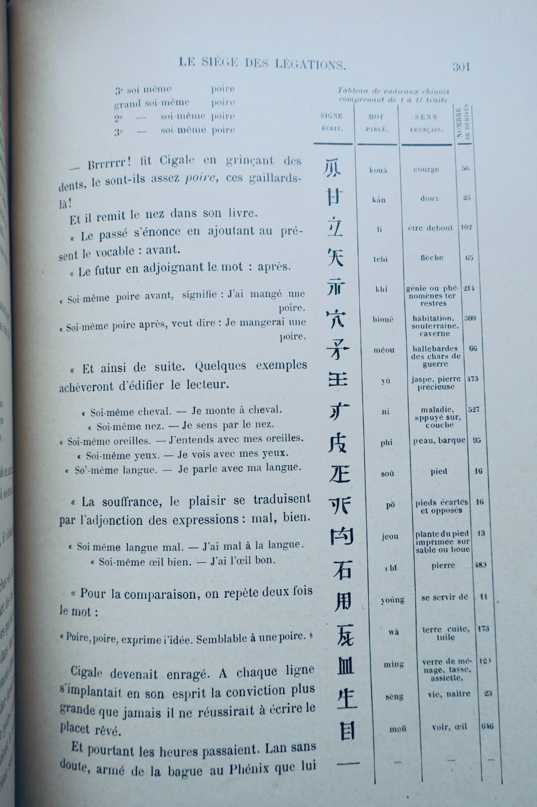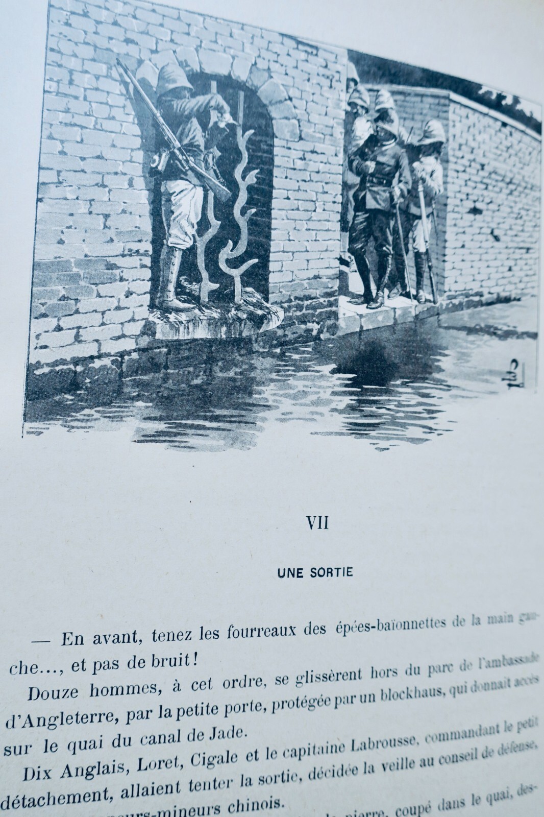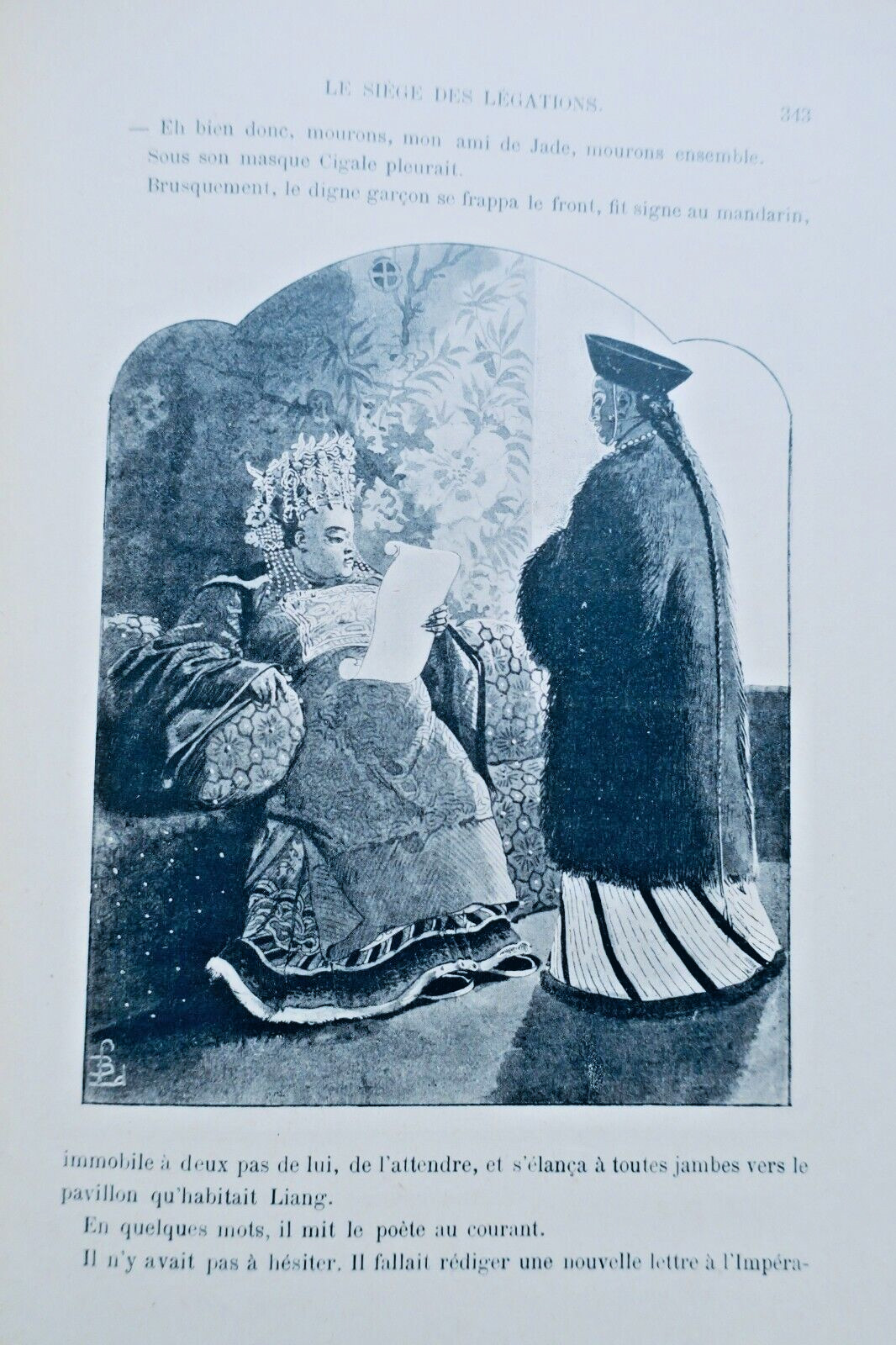 Edition originale illustrée par Louis BOMBLED de 100 gravures sur bois dans le texte et de 20 grandes compositions hors-texte, dont 8 monochromes en rouge, bleu ou sépia. Un jeune parisien Cigale, au coeur de la révolte des Boxers en Chine.