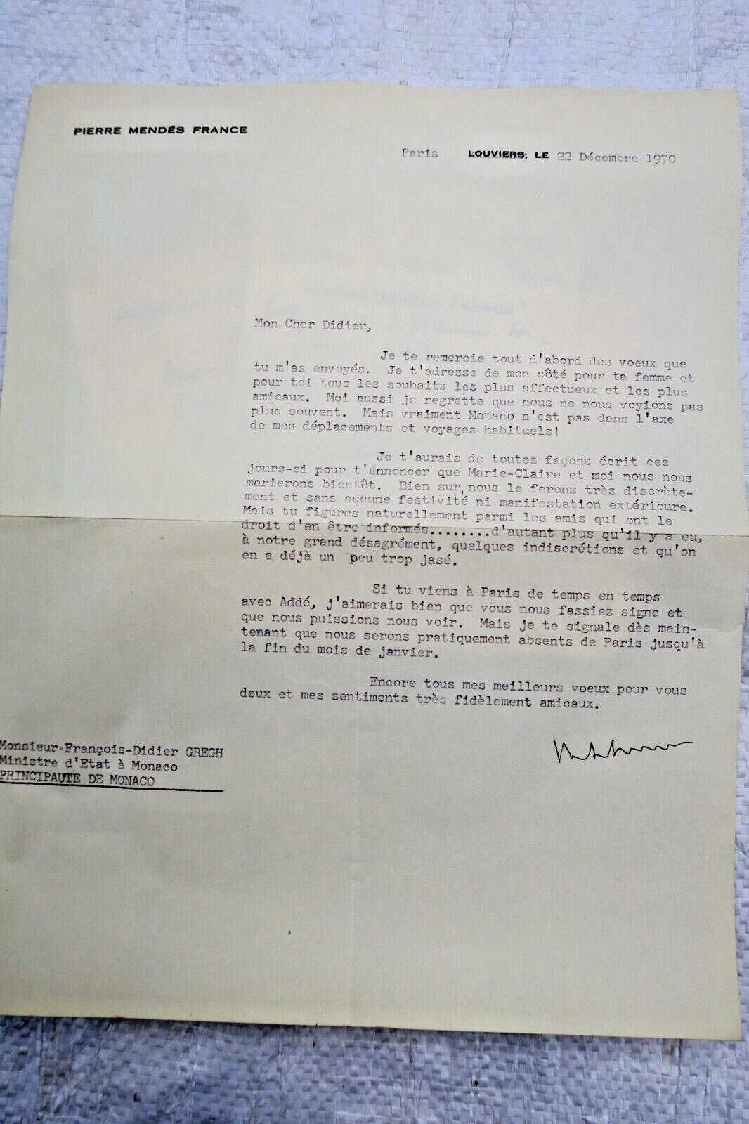 Pierre Mendès France 2 lettres signées