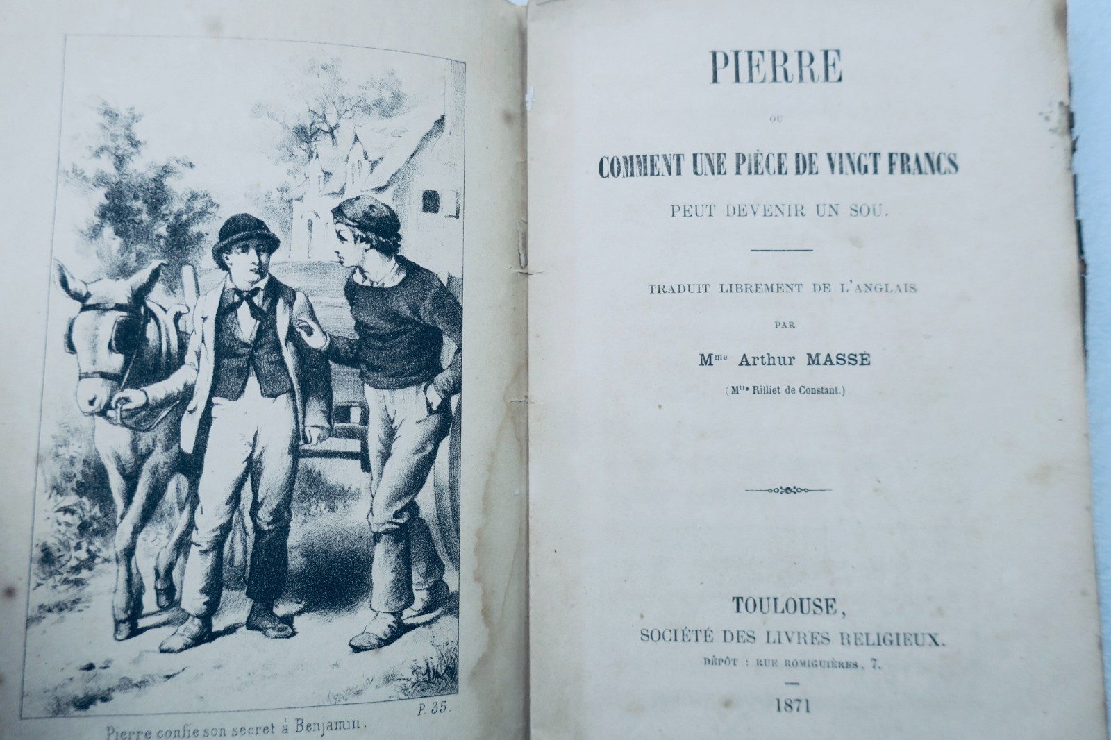 Pierre ou comment une pièce de vingt francs peut devenir un sou, traduit librement de l’anglais par Mme Arthur Massé