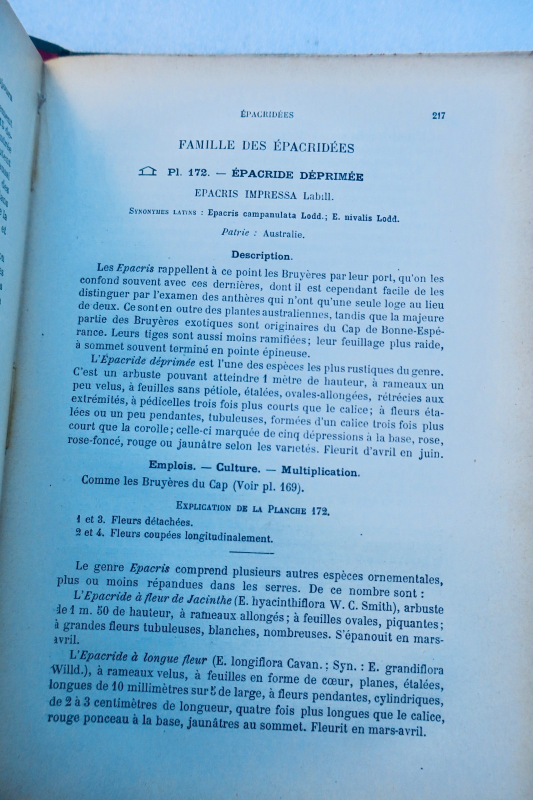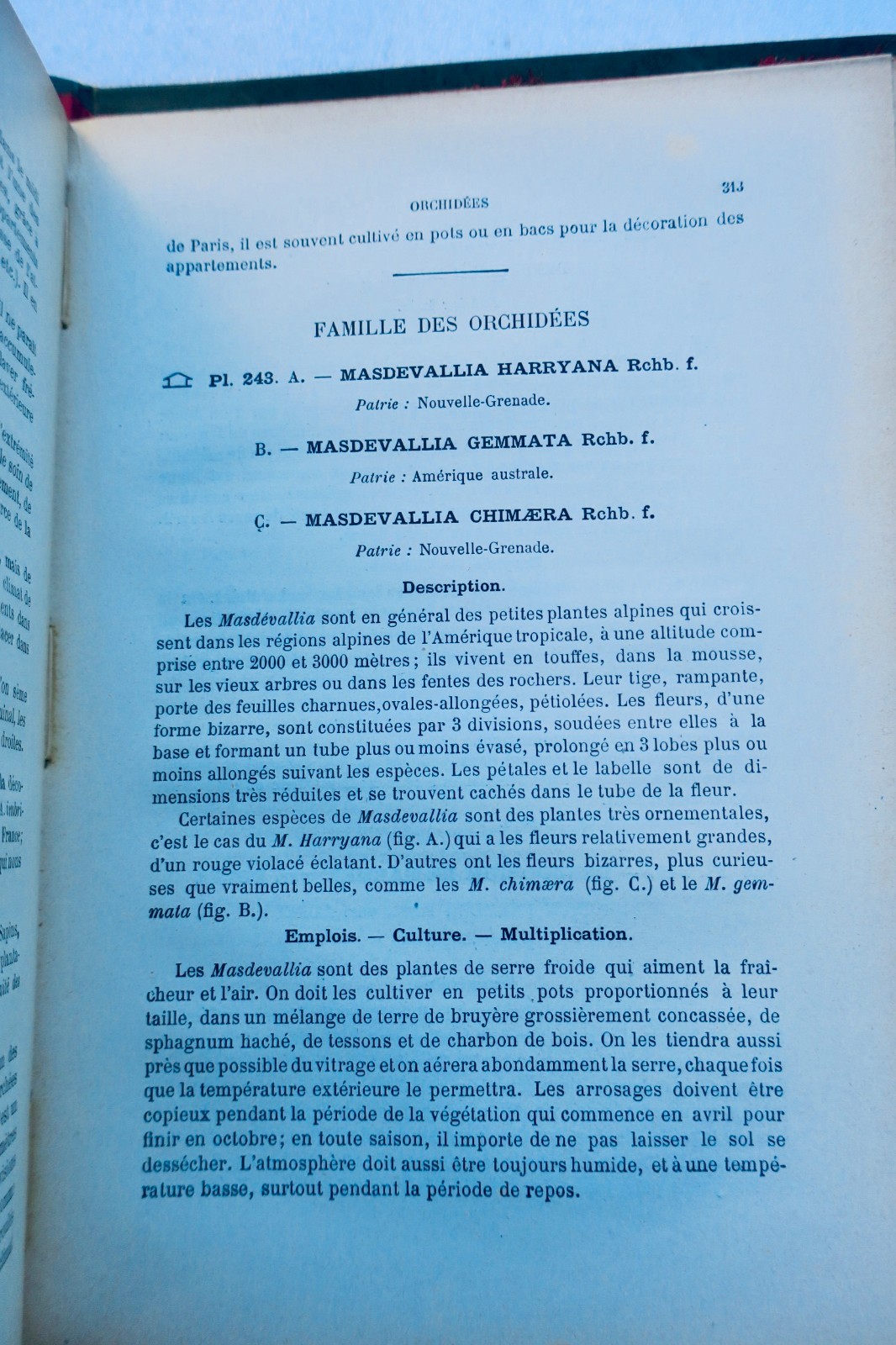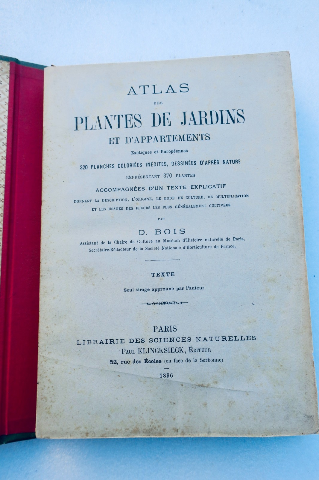 P, Klincksieck, 1896, 17 x 26 cm., 3 volumes, sous portfolio percaline, soit : un vol. de texte, broché de 432 pp. & 2 vols de planches libres (bien complet des 320 planches). 5 planches frangées aux bords, tous les noms de plantes sont corrigées à la main sur chacune des planches et chacun des numéros de planches sont ré-attribués probablement par l’auteur ou l’éditeur.