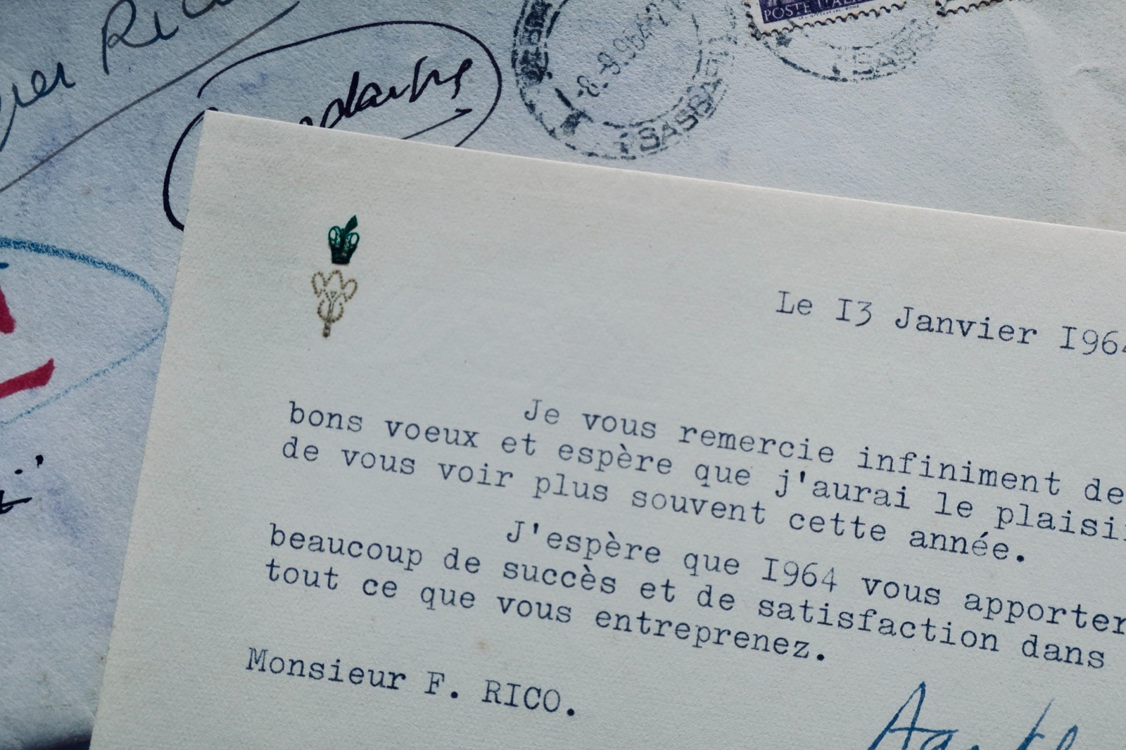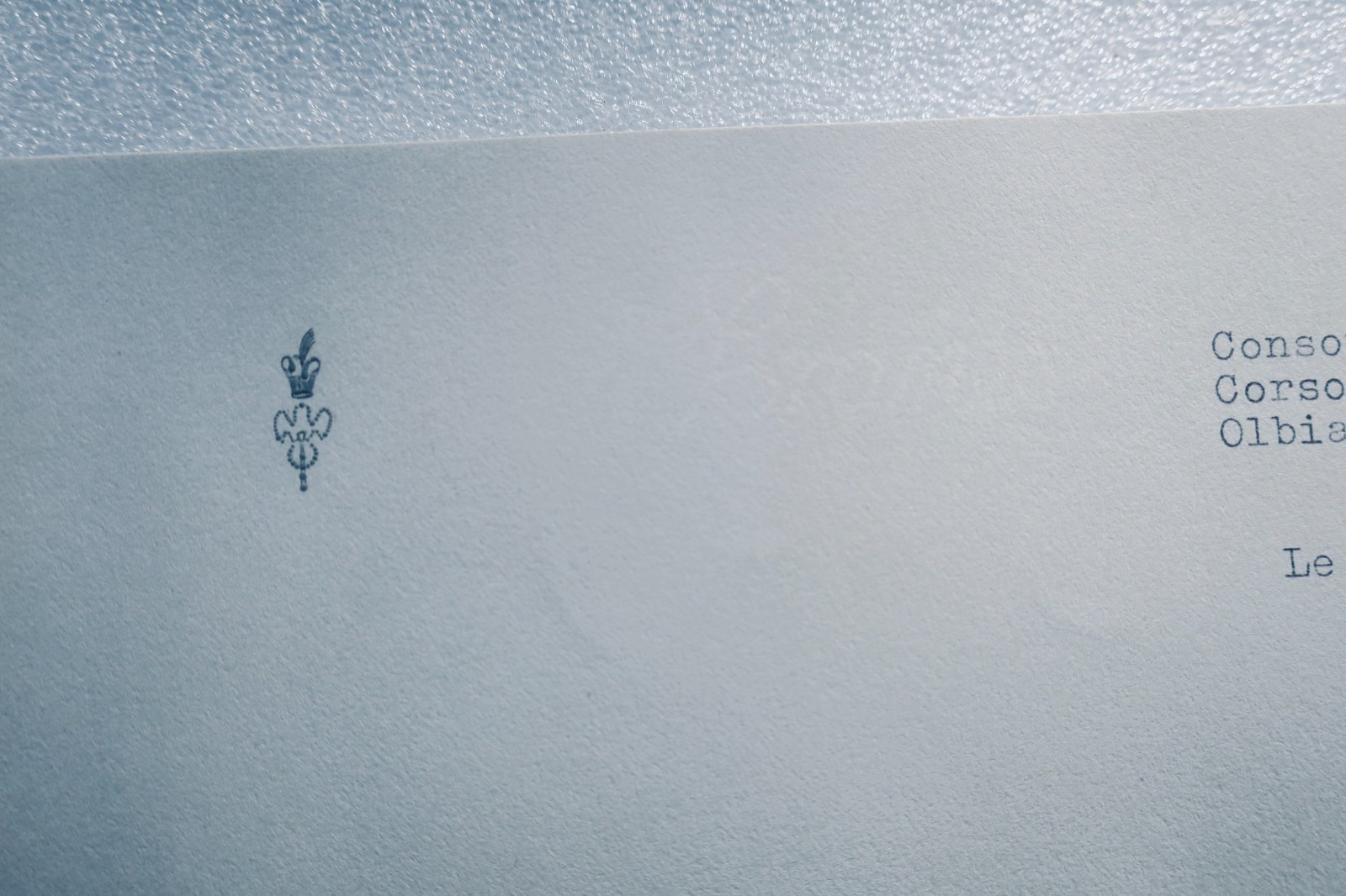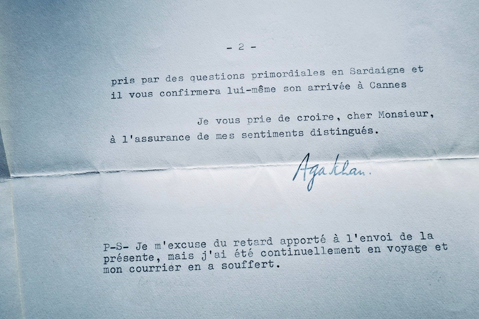 Nous joignons une lettre & une carte de voeux tapuscrites sous enveloppe signées de la main de l’Aga Khan à Francis Rico au sujet de la création du site de Porto Cervo, ainsi qu’une coupure de presse de Francis Rico également au sujet de Porto Cervo