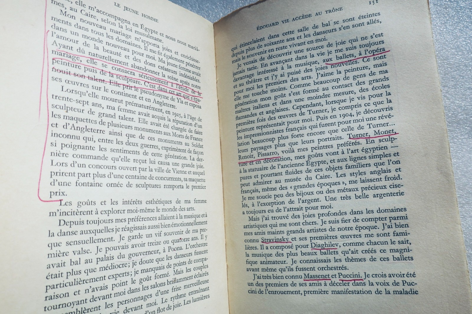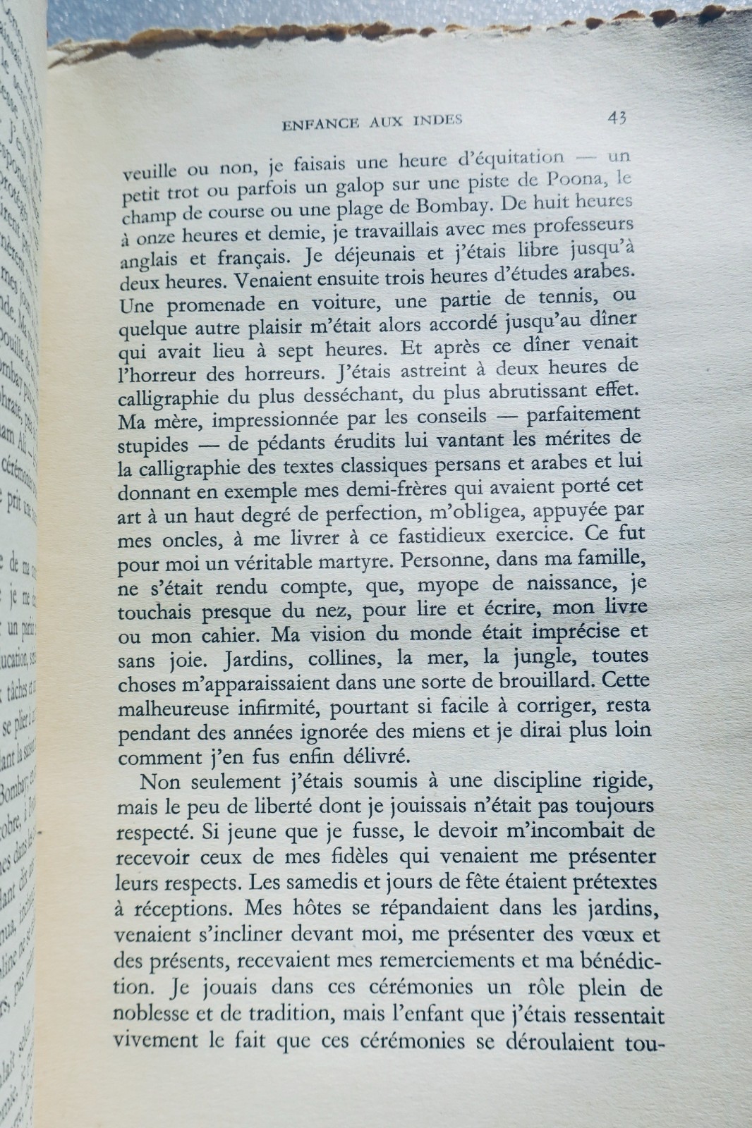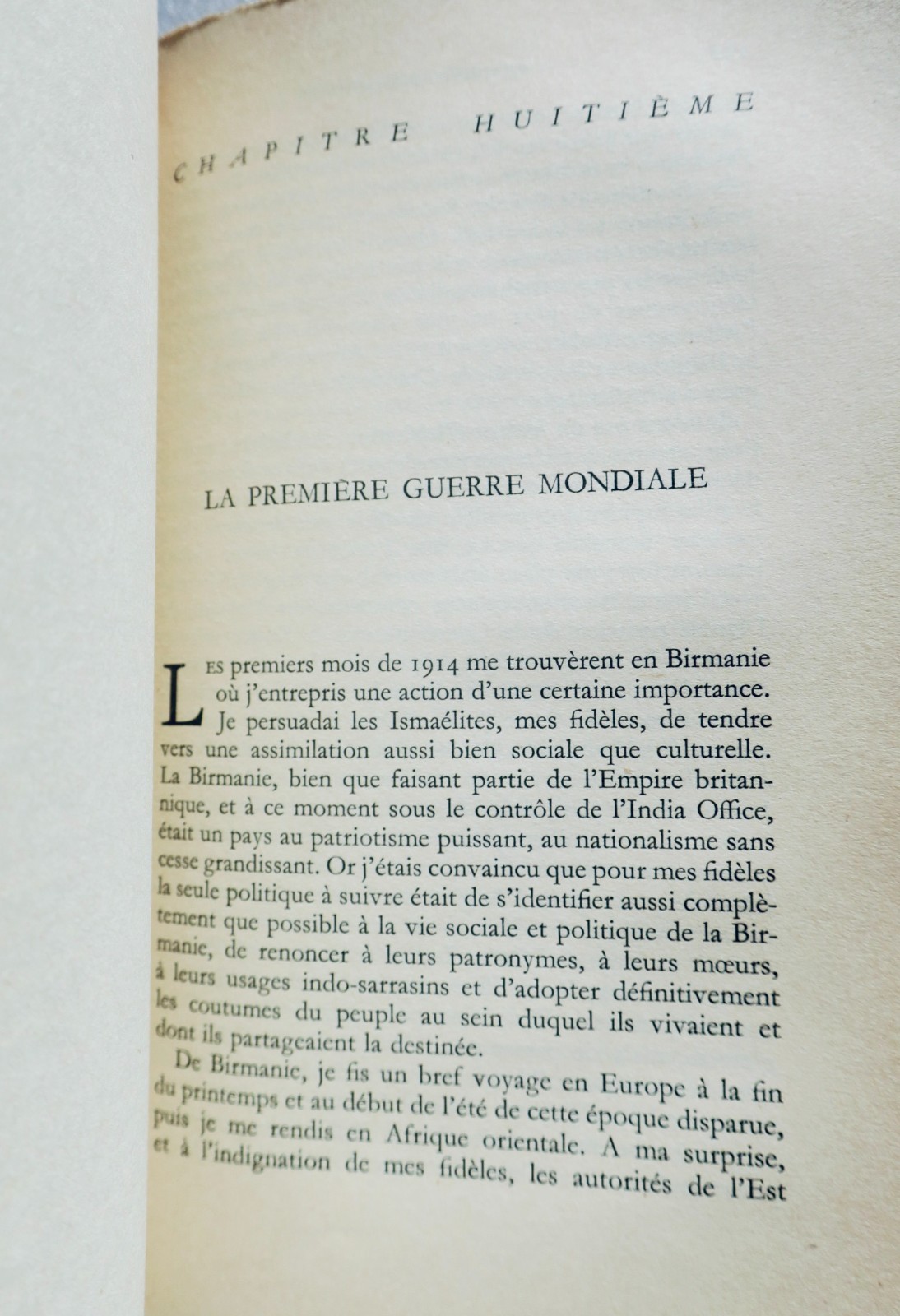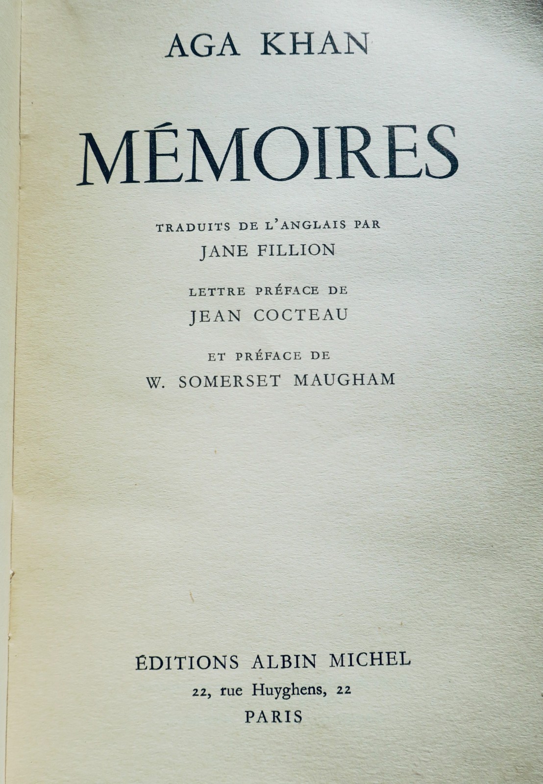 Paris, Albin Michel, 1955, 13,5 x 19,5 cm., broché sous jaquette (usures) illustré du portrait de l’ Aga Khan par Kees Van Dongen, XXIV & 422 pp., quelques coups de crayon en marges.