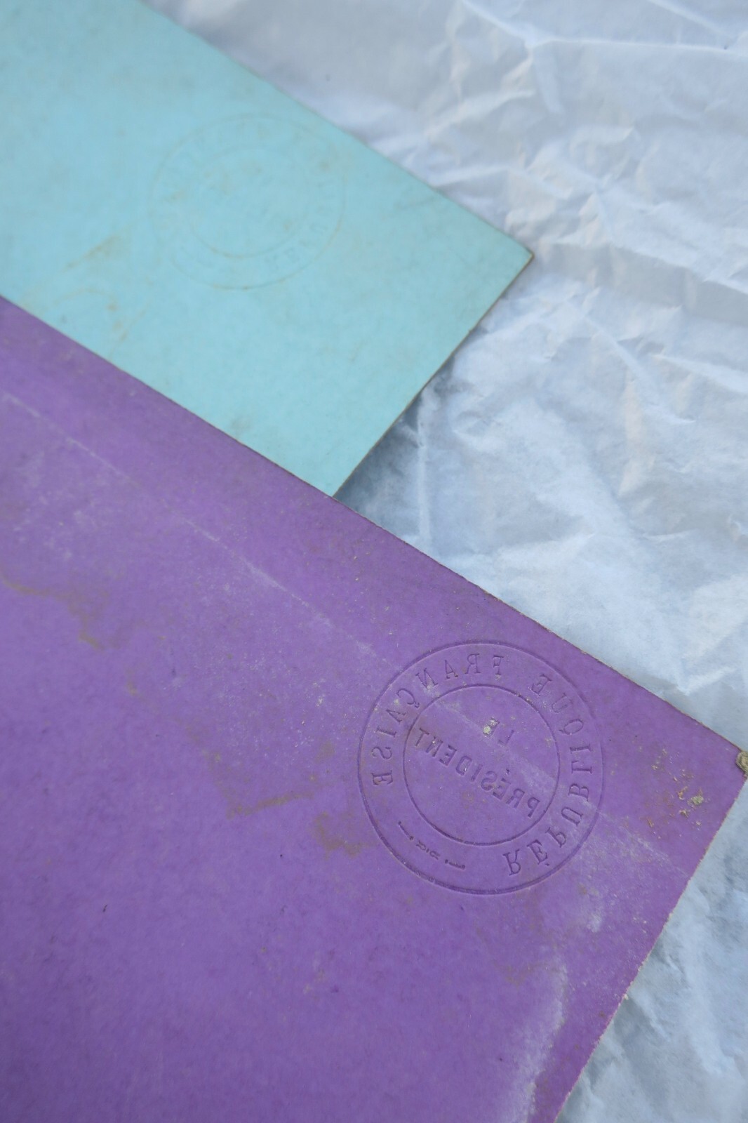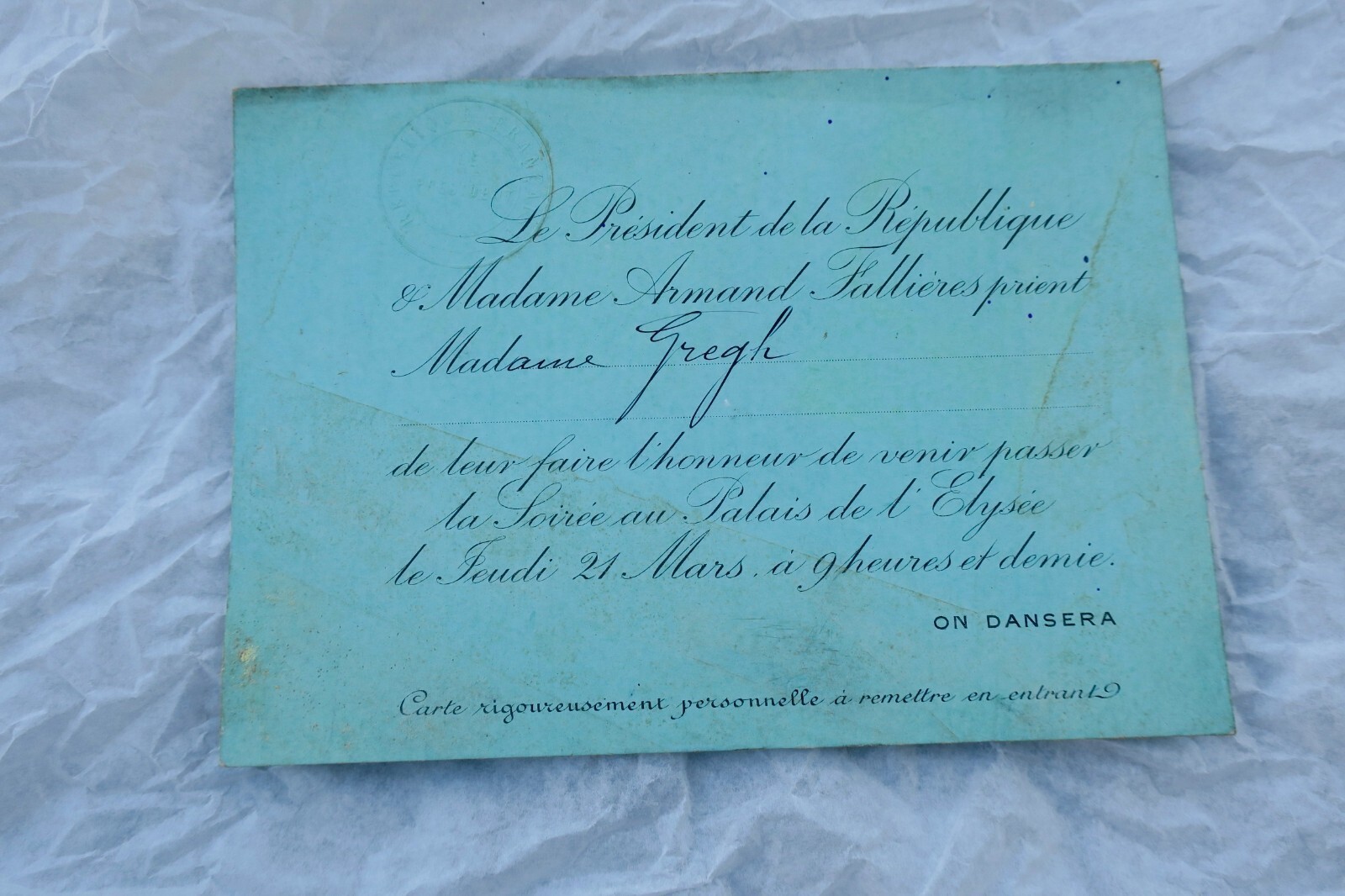 Deux jolis cartons d’invitation pour M. & Mme Fernand Gregh poète et académicien