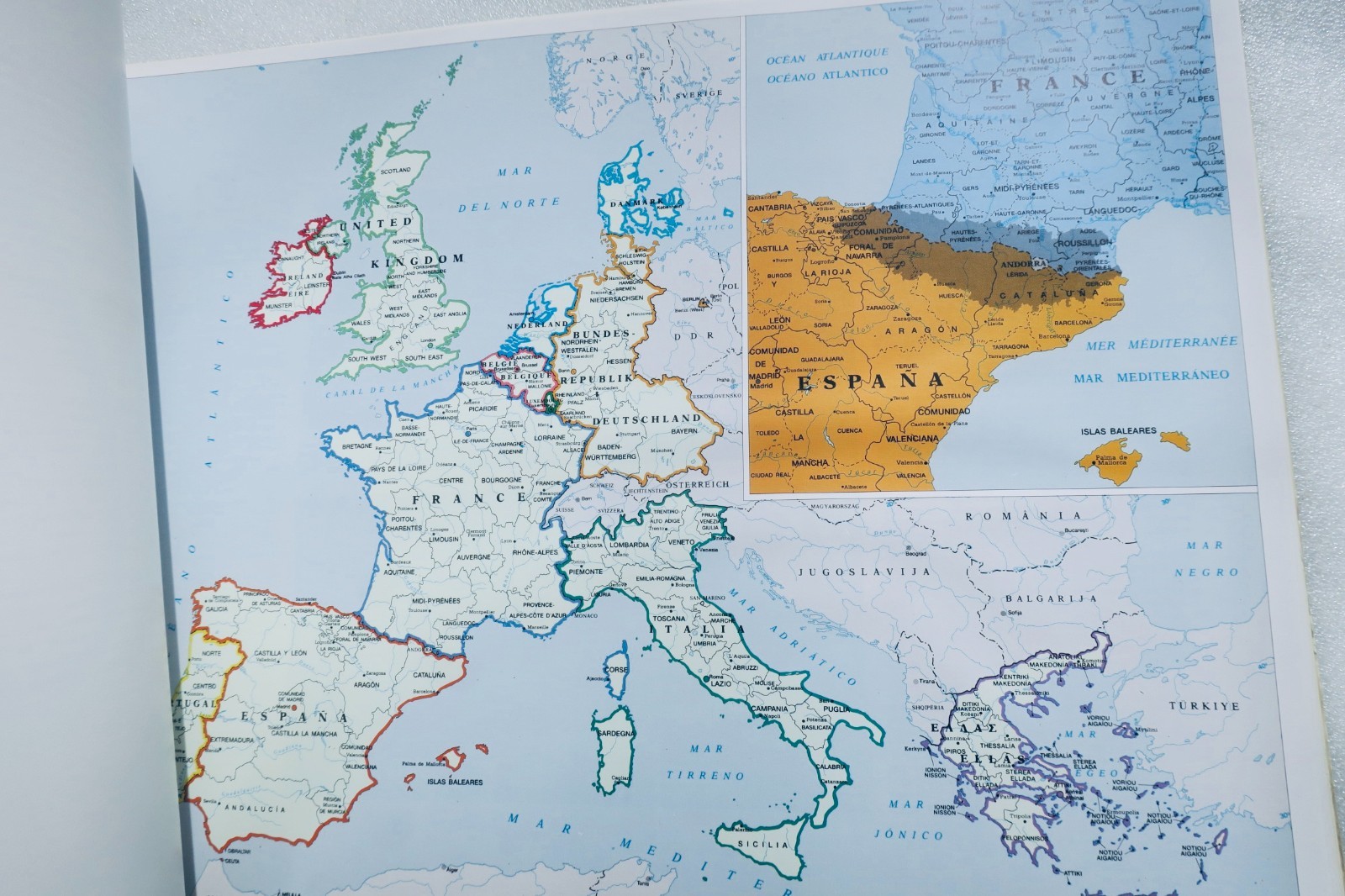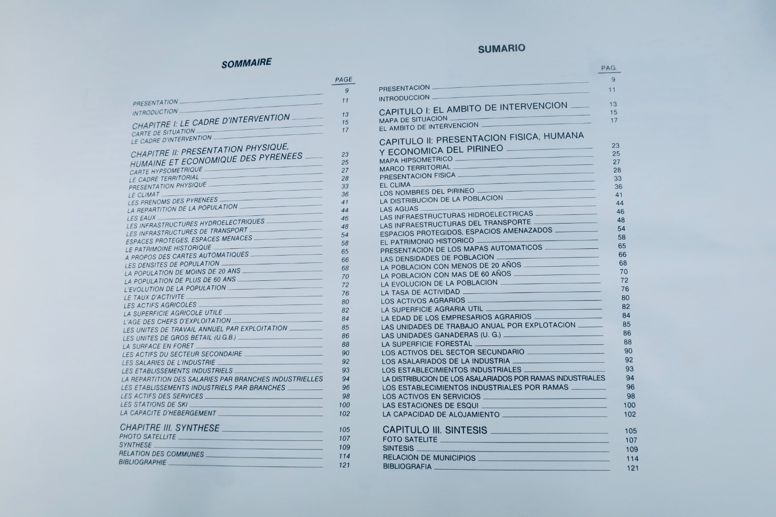 Délégation de l’Aménagement du Territoire et à l’Action Régionale & Ministerio de Obras Publicas y Urbanismo, à Madrid, 1989. In-folio à l’italienne monté sur spirale, 31 x 43 cm., bords frottés, 121 pp., cartes, transparents et photos. Texte en français de Jean-Paul Laborie avec traduction en regard en espagnol de José Maria Pala. Ouvrage paru avec la Délégation de l’Aménagement du Territoire et à l’Action Régionale et Espanya Ministerio de Obras Publicas y Urbanismo, Instituto del Terriforie y Urbanismo