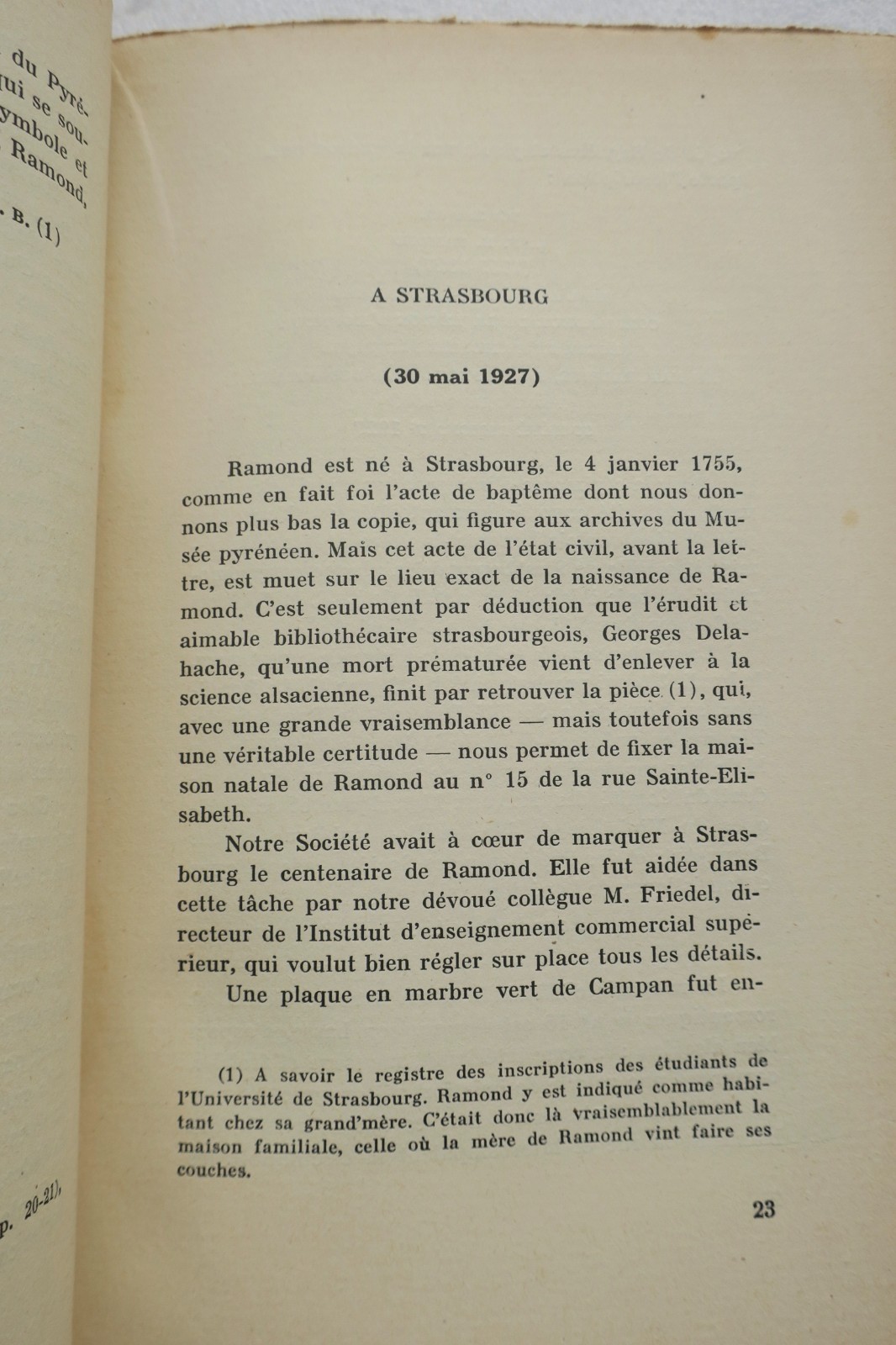 Ramond 1755-1827 : COMMEMORATION DE 1927. BAGNERES-DE-BIGORRE