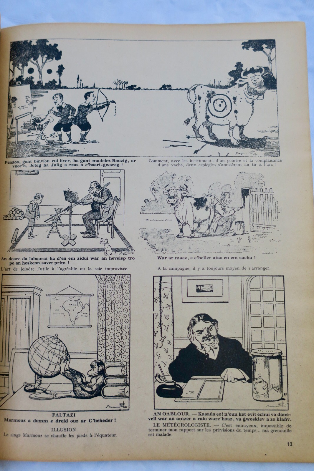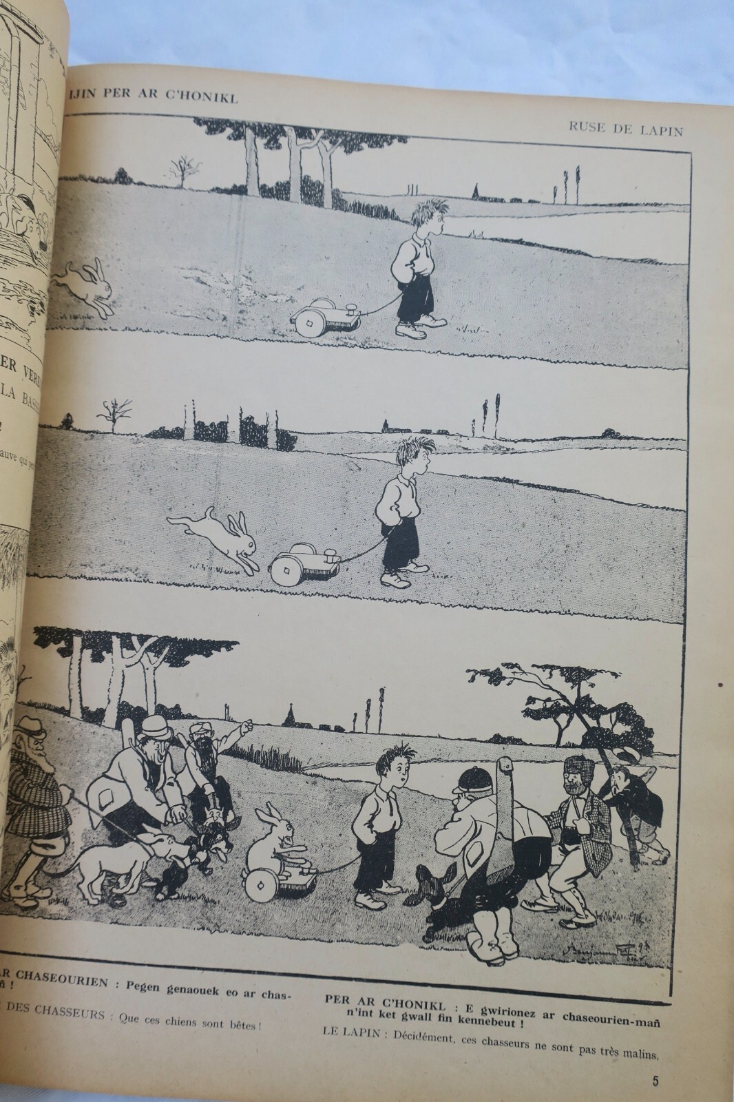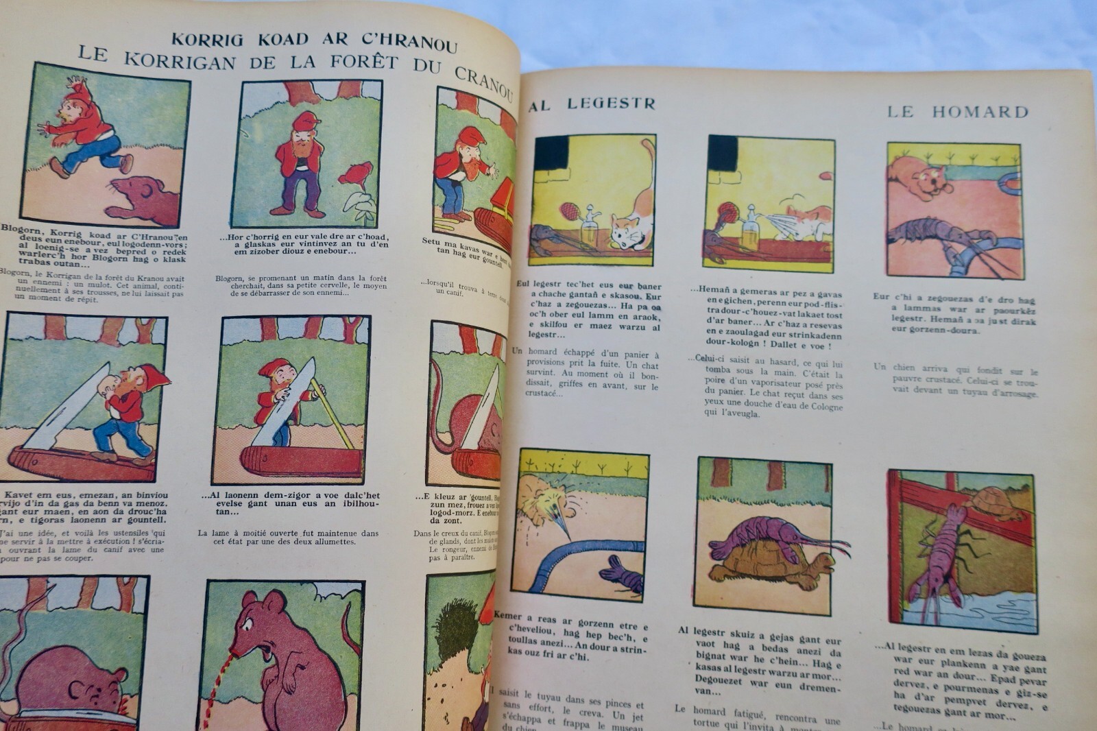 Rabier BenjaminAu temps où les bêtes parlaient breton. Histoires en images et dessins amusantsLanderneau Editions Ololé-Urz Goanag Breiz, In-4°, album cartonné, sans date, 64 pages, texte en français et en breton, illustrations en noir et en couleurs de Benjamin Rabier, petites usures en coins et en coiffes.Agréable exemplaire
