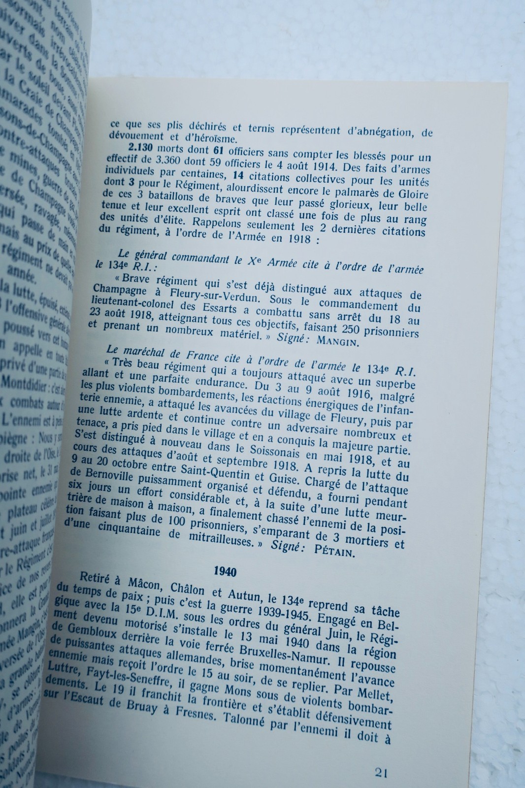 Historique du cent-trente-quatre d’infanterie