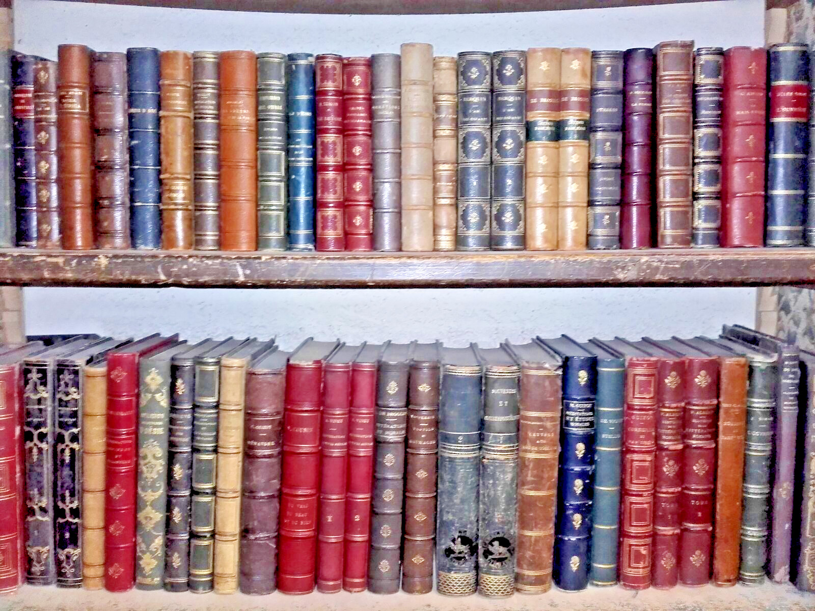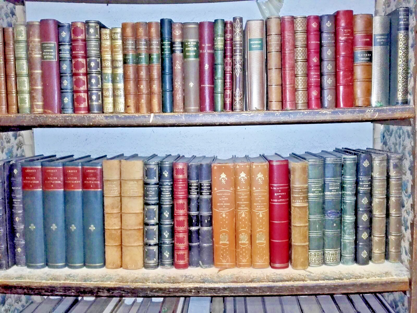Nous vendons pour de la décoration des livres reliés en cuir de divers formats, le plus souvent en bel état ou très bel état, allant de la couleur verte, brun, rouge, beige, bleu… au noir, (si vous le souhaitez & à votre demande nous disposons aussi de livres à reliure cartonnée, brochés plus simplement). Les livres datent du XVIIIème, XIXème & début du XXème siècle (compter environ 25 à 35 livres par mètre).