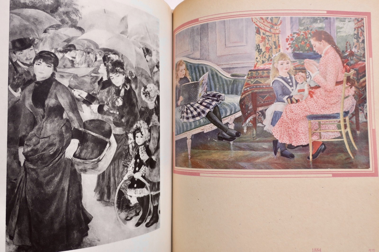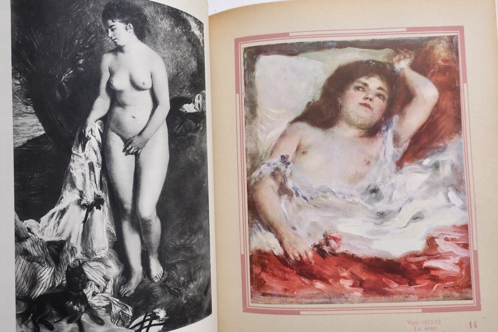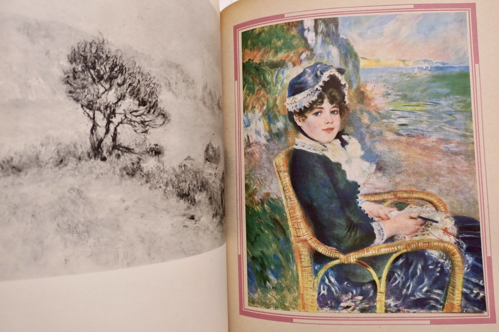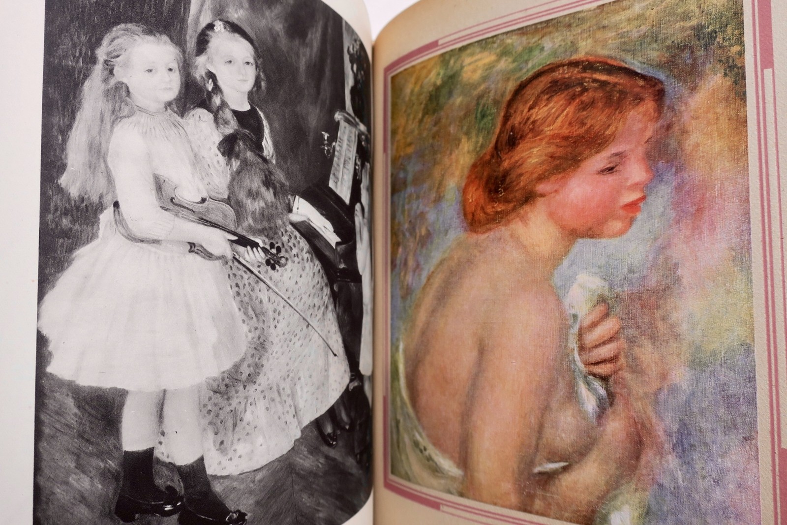 Paris, P. Tisné, coll. “Prométhée” publiée sous la direction de R. Huyghe & G. Bazin, 1944. In-4° de 243 pages. Illustré de 162 planches hors-texte, dont beaucoup en couleurs. Cartonnage de l’éditeur sous jaquette illustrée, initiation à la beauté a travers l’impressionnisme – la “manière aigre” – sérénité de l’age mûr – Les créatures de Prométhée – Le peintre – graveur – Le sculpteur – Renoir par ses lettres et ses témoins – Renoir devant son temps – Jugements, chronologique – notices analytiques – expositions