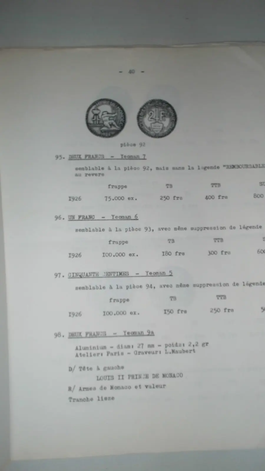 repertoire des monnaies monégasques par Jean de MEY + monnaies diverses