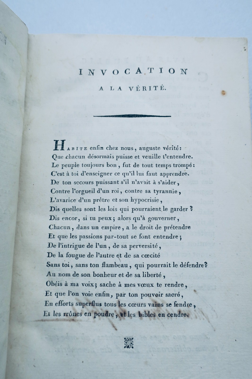 Desenne (Paris), 1793, in 8°, reliure demi-cuir, 4 ff. & 367 pp.