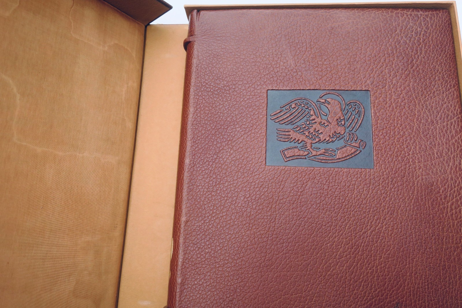 Sans lieu Maurice Robert, éditeur – Club Bibliophile de France, 1947, in folio (39,5×32), superbe reliure plein cuir havane à gros grains, dos a 2 nerfs, tranches dorées, 241 pages, gardes moirées, illustré de 21 bandeaux, et de 31 illustrations par Edy Legrand, dont 3 hors texte, sous emboitage (assez abimé) cuir et carton, garni de tissus moiré en partie interne.