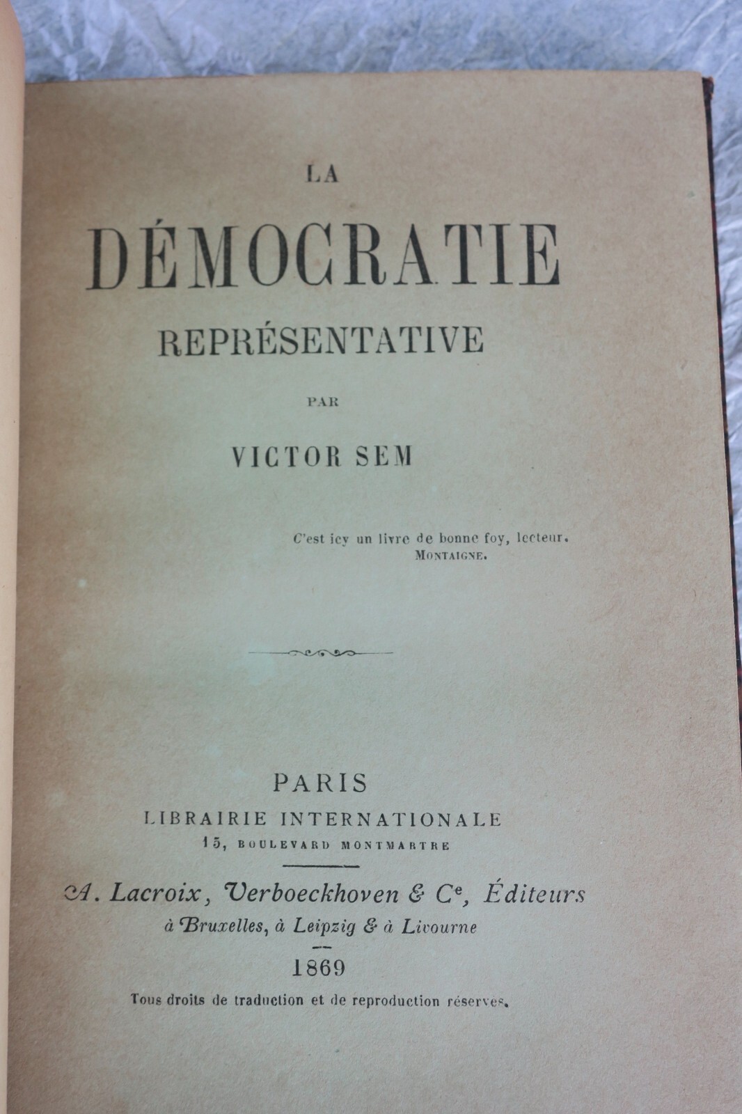 – A. Lacroix & Verboeckoven & Cie, Paris 1869, in 12, reliure demi-cuir, 70 pp.