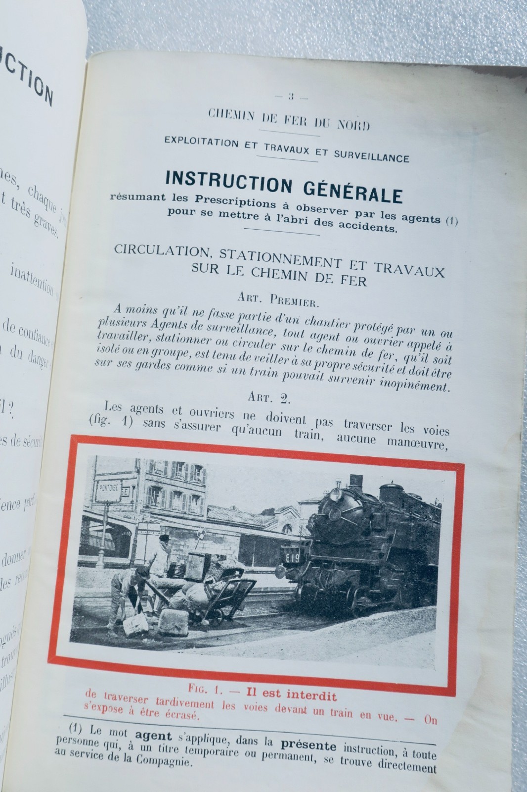 Instruction générale résumant les prescriptions à observer par les agents pour se mettre à l’abris des accidents – Chemin de Fer du Nord , Exploitation et Travaux et Surveillance