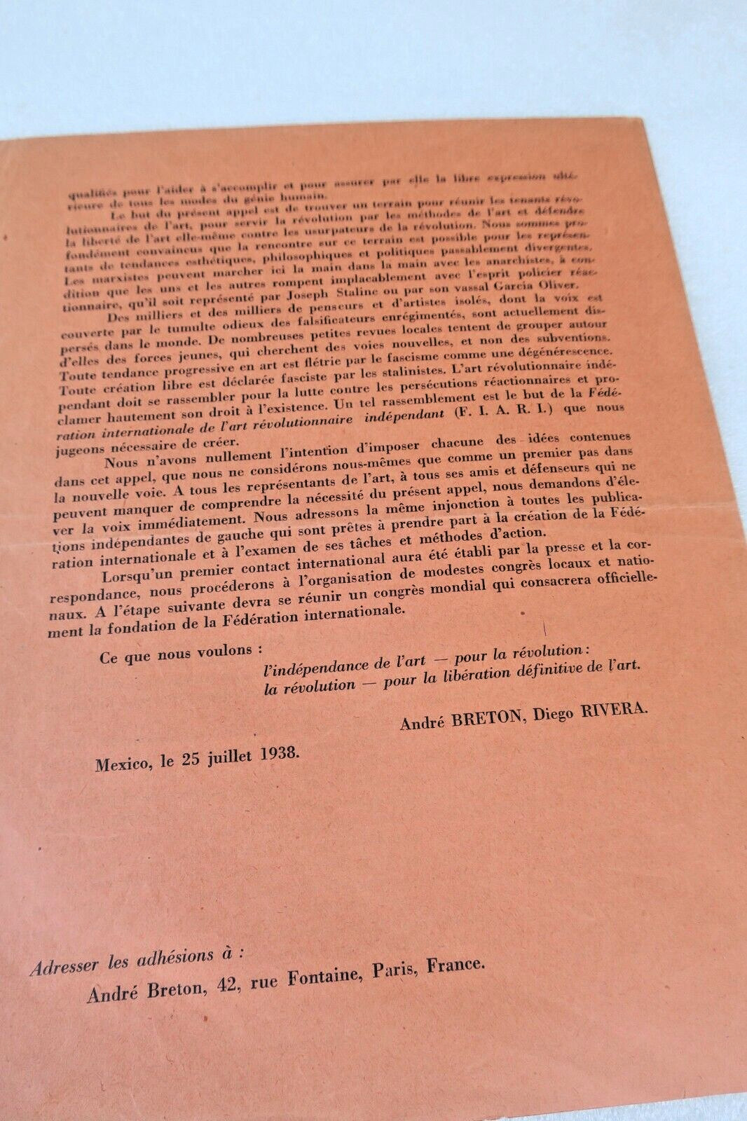 surréalisme POUR UN ART RÉVOLUTIONNAIRE INDEPENDENT Trotsky Breton 1938 Mexico